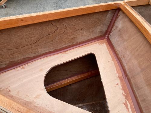 The finished hatch cover will eventually be screwed into place and gasketed.